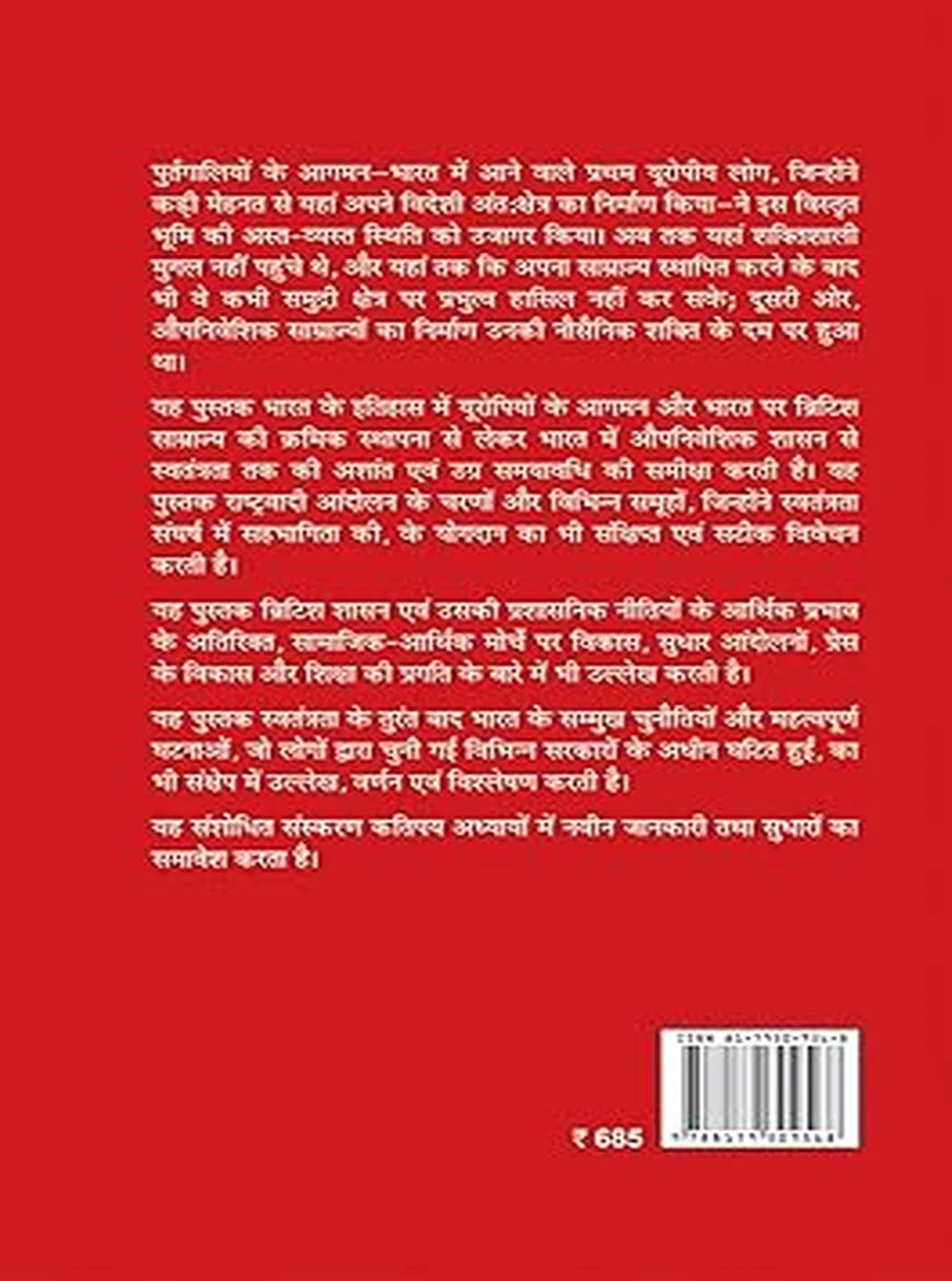 This book thoroughly covers the arrival of Europeans in India, the establishment of British rule, socio-religious reform movements, tribal and peasant uprisings, the growth of Indian nationalism, and the freedom struggle. It also provides insight into administrative, economic, and cultural changes during British rule, making it equally useful for Prelims and Mains preparation. Carefully curated content, supported by facts, timelines, and analytical explanations, ensures strong conceptual clarity.