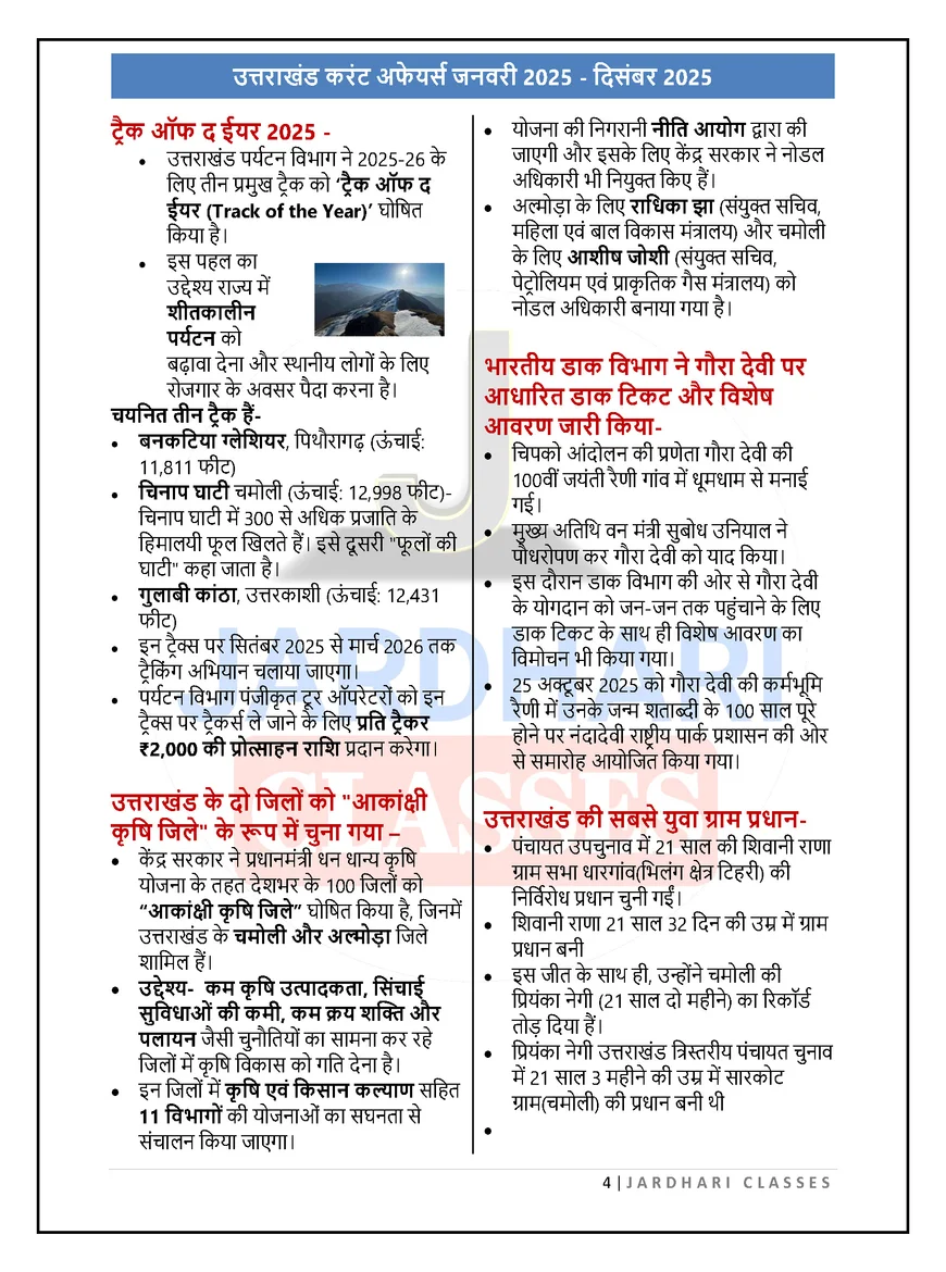 Uttarakhand Current Affairs Yearly 2025 (January–December) (HIndi)